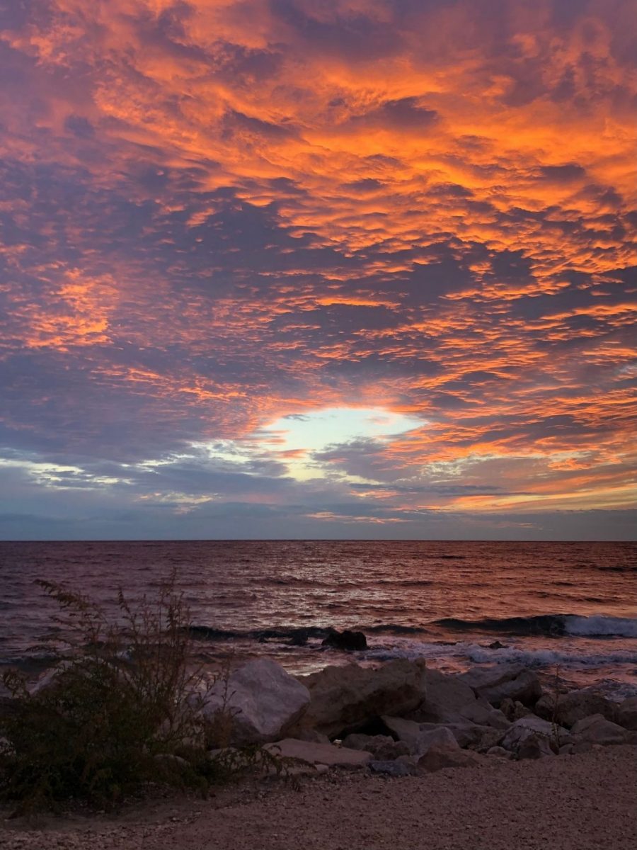 Au mois de Novembre, à Bandol, le ciel se pare de ses plus belles couleurs. Bleu, rose, orange, rouge, violet, gris… toutes les couleurs sont au rendez-vous, matin et soir pour nous offrir de superbes spectacles. Spectacles qui peuvent s’avérer être sons et lumières si vous les observer depuis le bord de mer avec le bruit des vagues en fond.