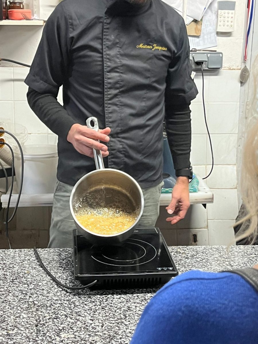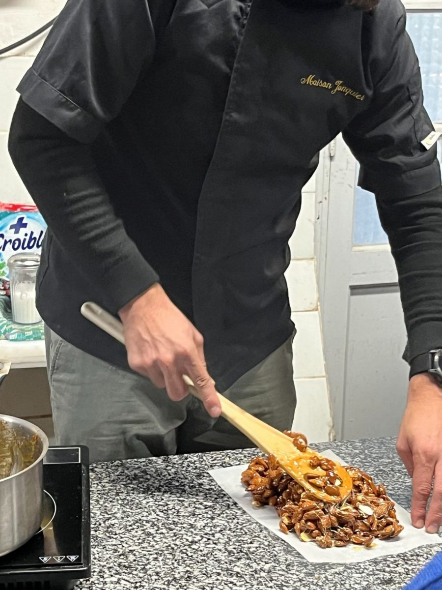 La magie commence alors à s’opérer. Devant nos yeux, Benoit réalise la recette signature de la Maison. Du sucre, de l’eau, du miel… et c’est tout ? Eh bien oui, le nougat ne nécessite pas beaucoup d’ingrédients, mais une bonne dose de savoir-faire ! Puis, sont arrivées dans l’ordre la cuisson, l’ajout des amandes, le façonnage et la mise au repos. Pour finir sur la dernière étape et non des moindres, la dégustation. Le nougat est encore tiède, c’est un vrai délice !