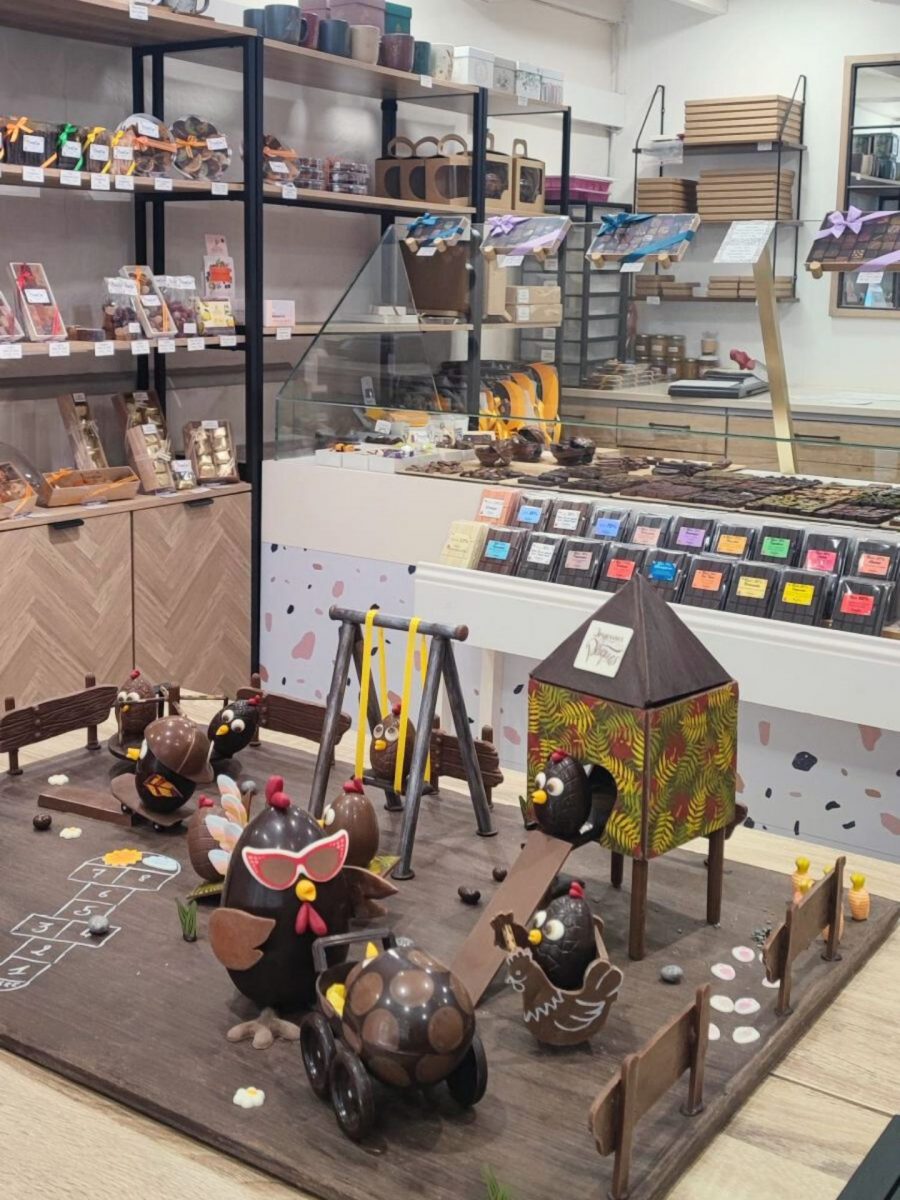 Sur les étagères, des dizaines de créations de la maison. Des chocolats en tout genre, des pièces majestueuses, des friandises aux saveurs d’ici ainsi que de très belles références de thés et d’infusions… En bref, de quoi organiser le goûter de ses rêves. Toutes ces beautés, réalisées par Vanessa, la cheffe chocolatière, sont proposées à la vente tout au long de l’année. En plus, quelques pépites sont aussi présentées en fonction des saisons. C’est le cas notamment des « œufs de mouette » du printemps (des bonbons chocolat caramel à tomber) et des traditionnels marrons glacés et autres délices de fin d’année.