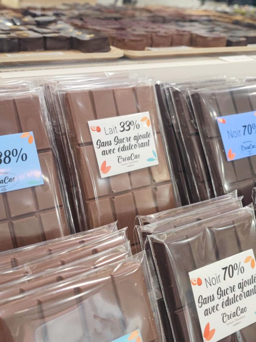 Au final, après plus d’une heure et demie d’activité, nous sommes repartis avec nos merveilles, qui représentaient tout de même environ 300 g de chocolat par personne. Spoiler alert : les tablettes n’ont pas fait long feu…
