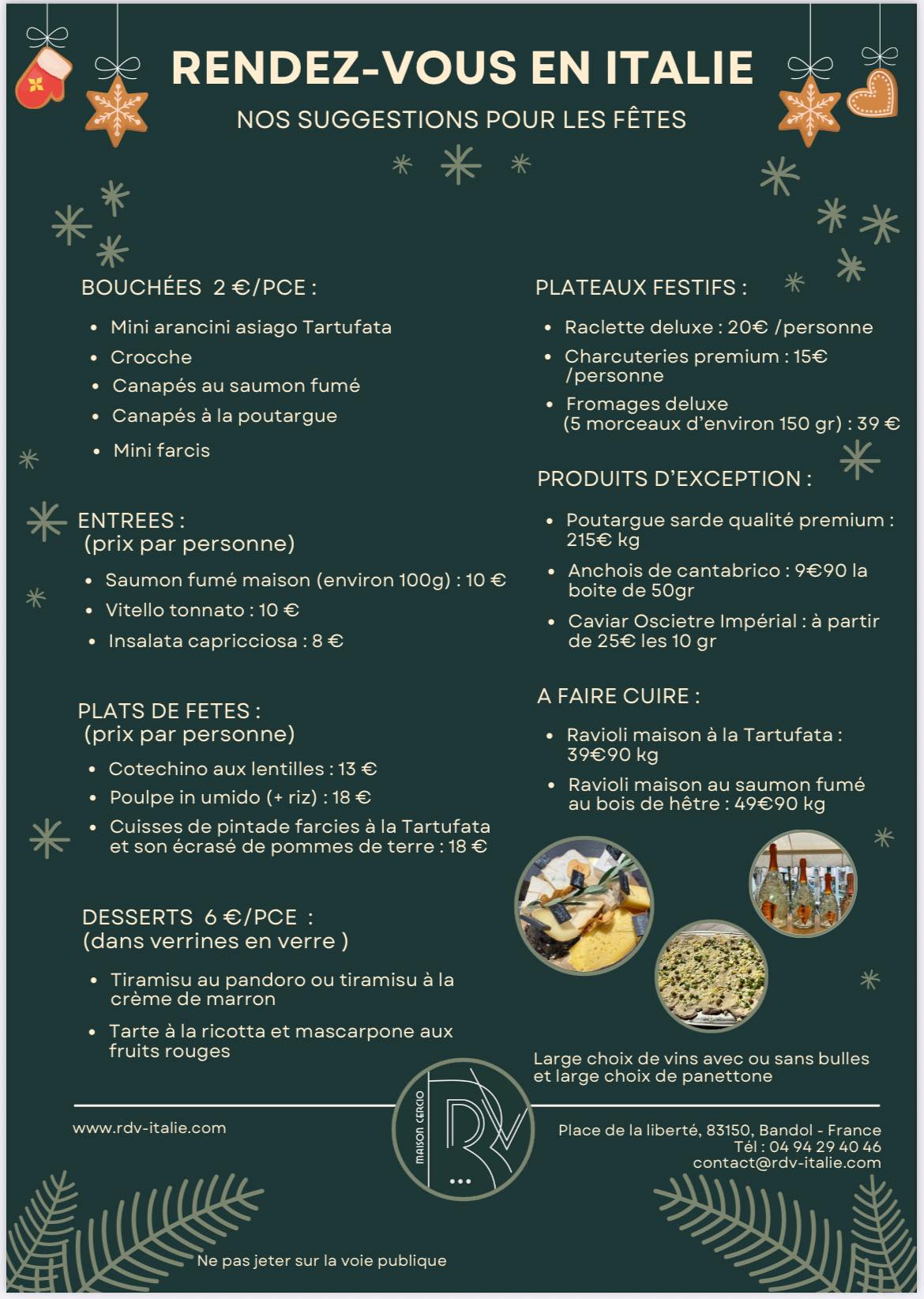Menu festif et accompagnements spéciaux pour le Réveillon disponibles par ici.