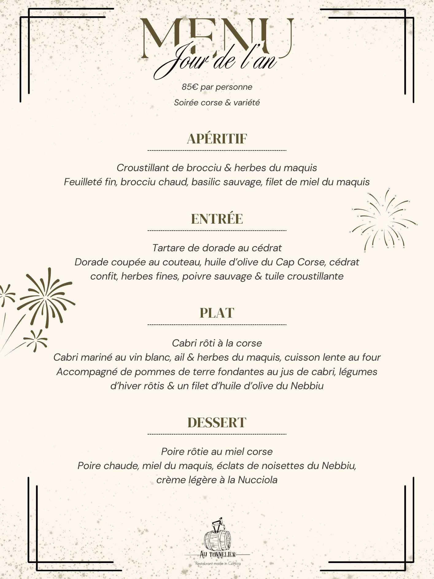 Soirée corse & variété avec menu spécial proposé pour la Saint-Sylvestre.