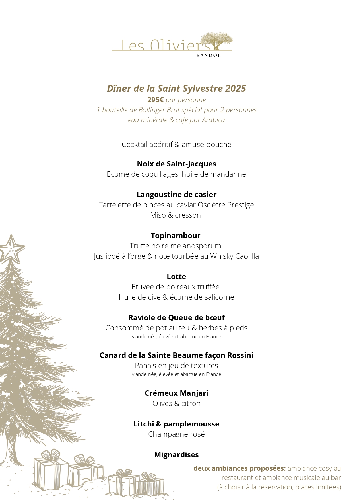 Restaurant ouvert pour la fin d’année avec les menus proposés ci-dessous :