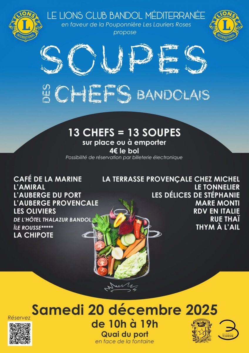 Le Lion's Club Méditerranée organise cette année encore son délicieux évènement « Les soupes des chefs bandolais » en faveur de la Pouponnière Les Lauriers Roses.