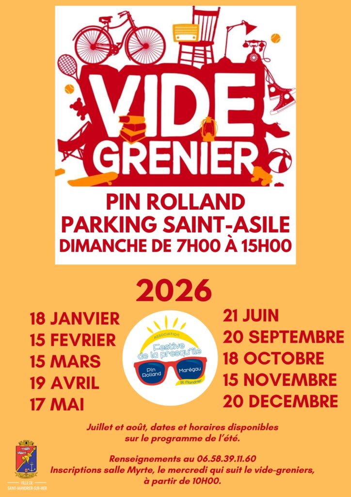 10 € l'emplacement de 4 mètres. Réservation obligatoire à la permanence le mercredi qui suit le dernier vide-grenier de 10 h à 12 h, salle Myrte au Pin Rolland.