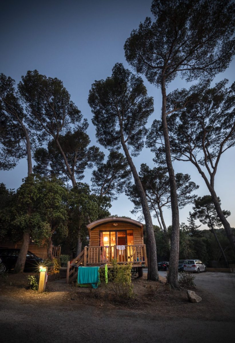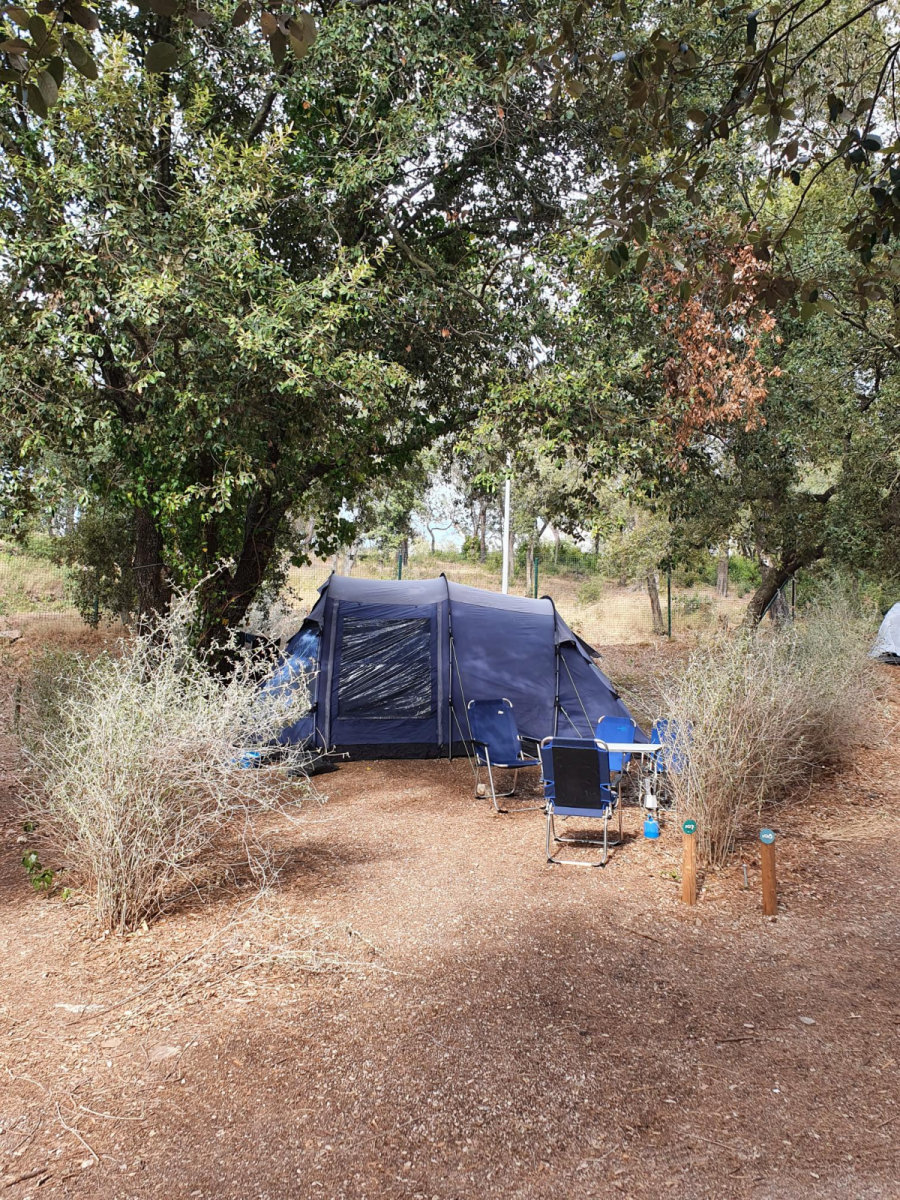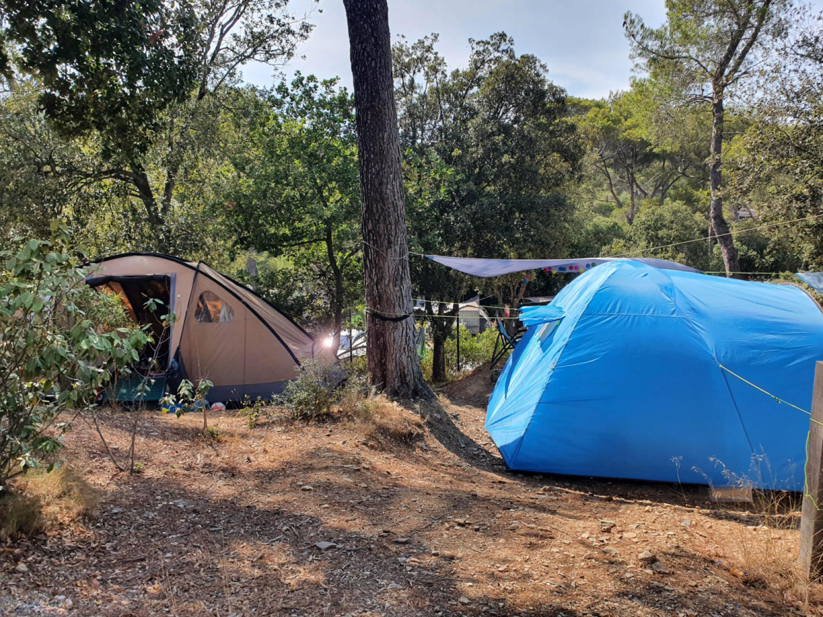 Camping-cars, caravanes et tentes profitent de la fraîcheur du sous-bois sur de vastes emplacements.
