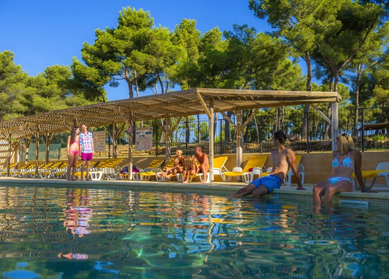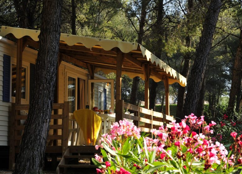 Location de mobil-home, gîtes, tentes lodges sous les pins à 900 mètres de la plage. 24 emplacements nus en forfait 6 personnes/électricité/emplacement voiture. Un snack en été et possibilité pension complète et demi-pension le reste de l'année.