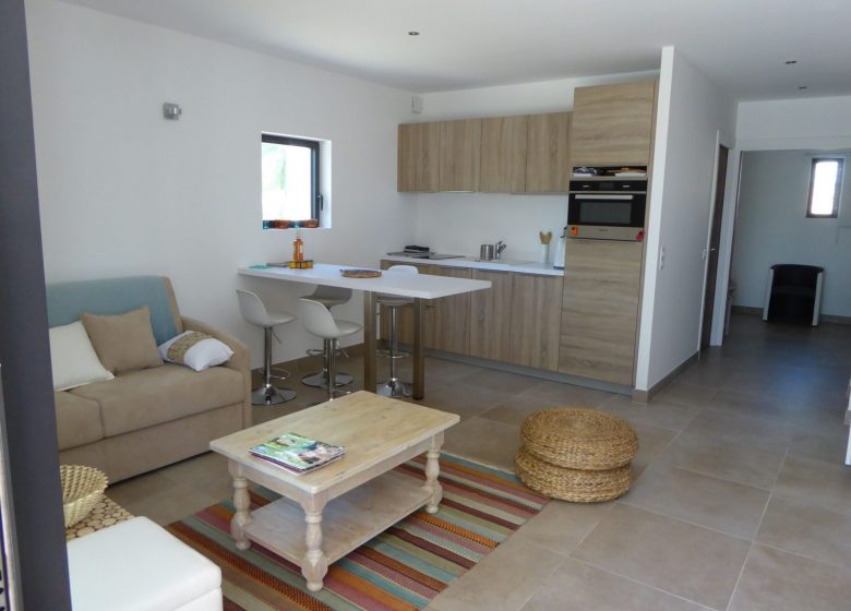 L’appartement se situe en rez-de-jardin de la propriété familiale, dans un quartier résidentiel, au pied des calanques, à 5 minutes à pied du sentier du littoral et de la mer, dans un parc de 4000 m² de pinède. L’appartement est climatisé et dispose d’un plancher raffraîchissant. La terrasse couverte donne sur le jardin et un coin privatif avec salon d'été. Il y a une chambre avec un lit en 140 cm, une salle de bain avec douche/WC, une cuisine entièrement équipée avec comptoir et 4 tabourets, un salon avec TV écran plat. Un canapé lit en 140 cm se trouve dans le salon.