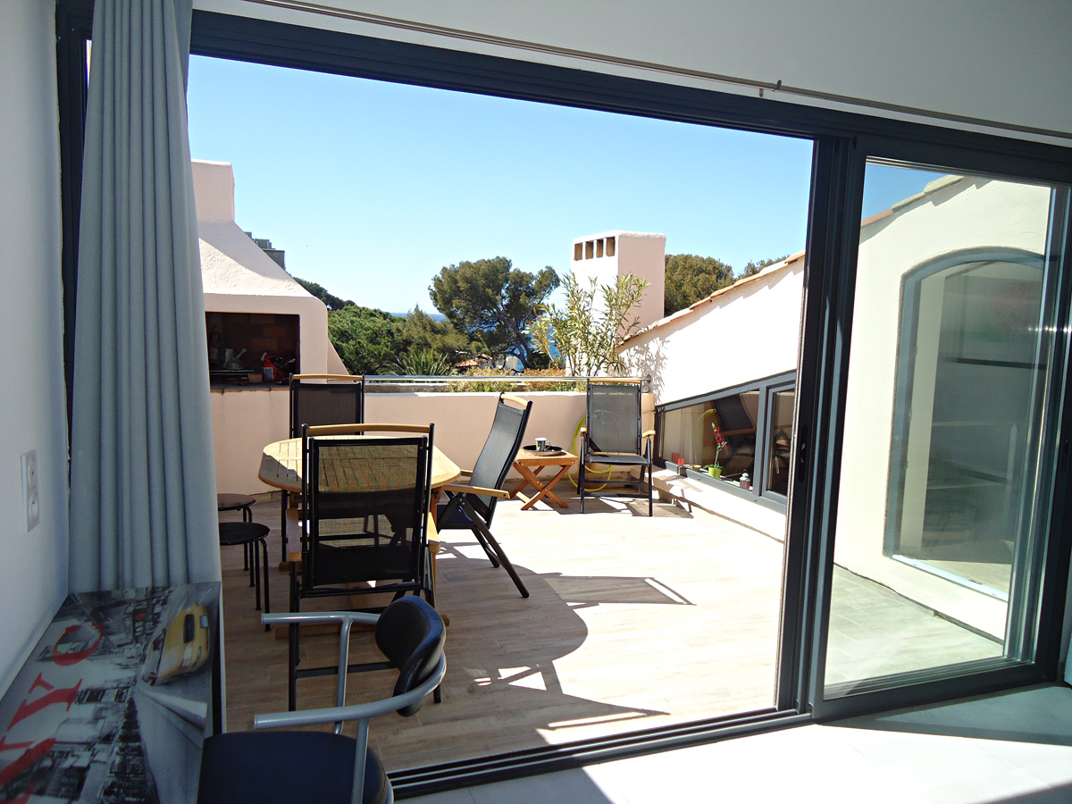 Belle terrasse 4m x 4m exposée plein sud, sans vis à vis, vue mer (plage Renécros et Port).