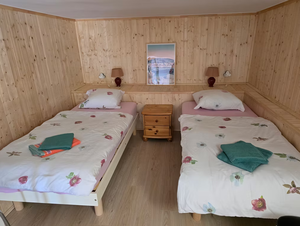 14 couchages au total + 1 lit supplémentaire, 1 lit d'enfant, 1 lit pour bébé ainsi que 2 chaises bébé.