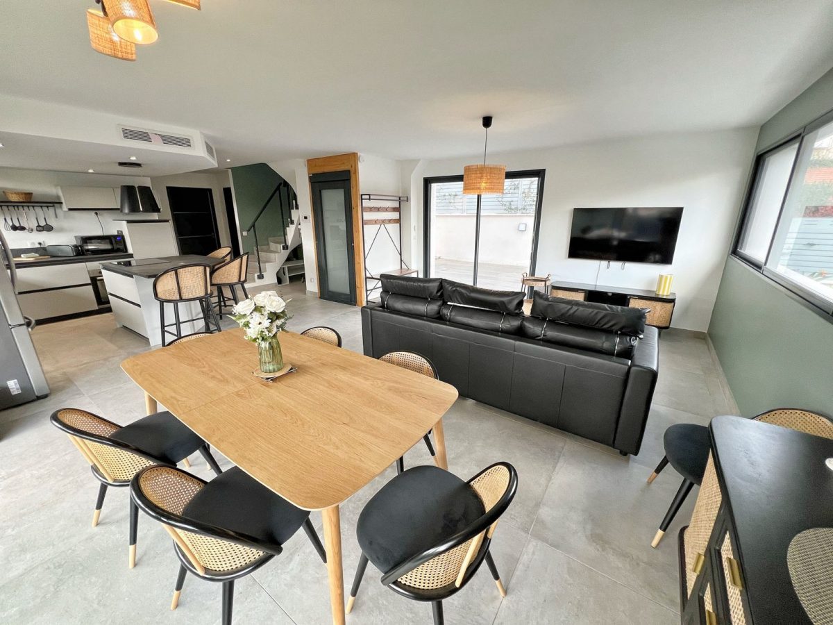 La villa peut accueillir 10 personnes avec 4 chambres et 3 salles de bain