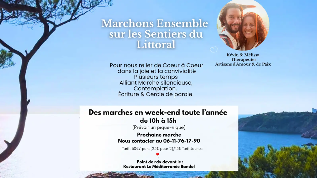 Guidés par l’élan de partager et prendre soin, nous vous proposons de découvrir les sentiers du littoral autrement à travers des marches en conscience qui ouvrent le cœur à la beauté de la nature, la détente et la rencontre avec soi-même.