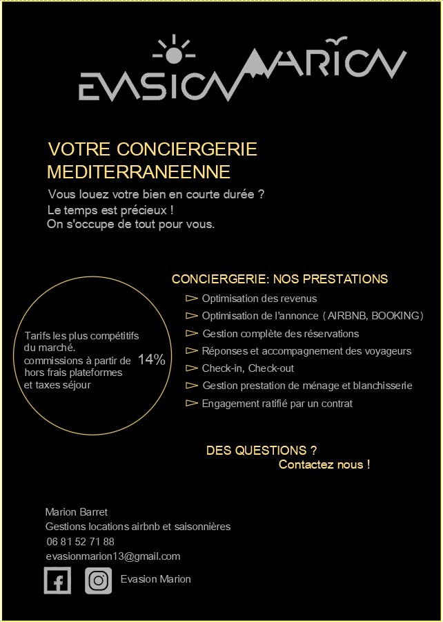 Une gestion 100% clé en main : Check-in, Check -out, ménage, linge , maintenance, gestion des voyageurs. Rejoignez les propriétaires qui m'ont fait confiance pour valoriser votre patrimoine et accueillir leurs voyageurs sans tracas pour vous !