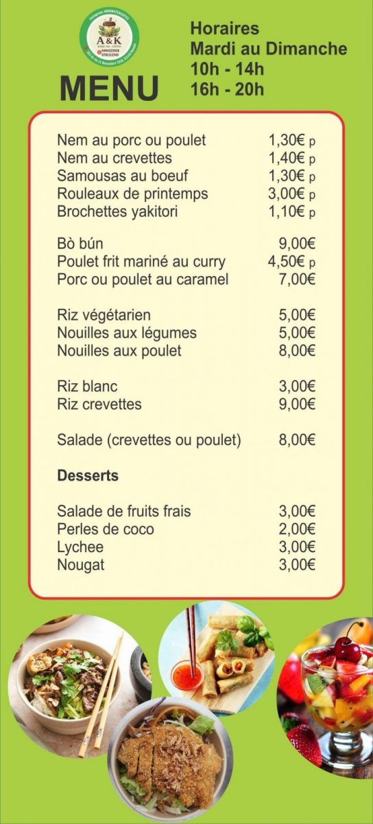 Ouvert les lundis, mardis, jeudis, vendredis et samedis de 12h00 à 14h00 et de 19h00 à 22h00