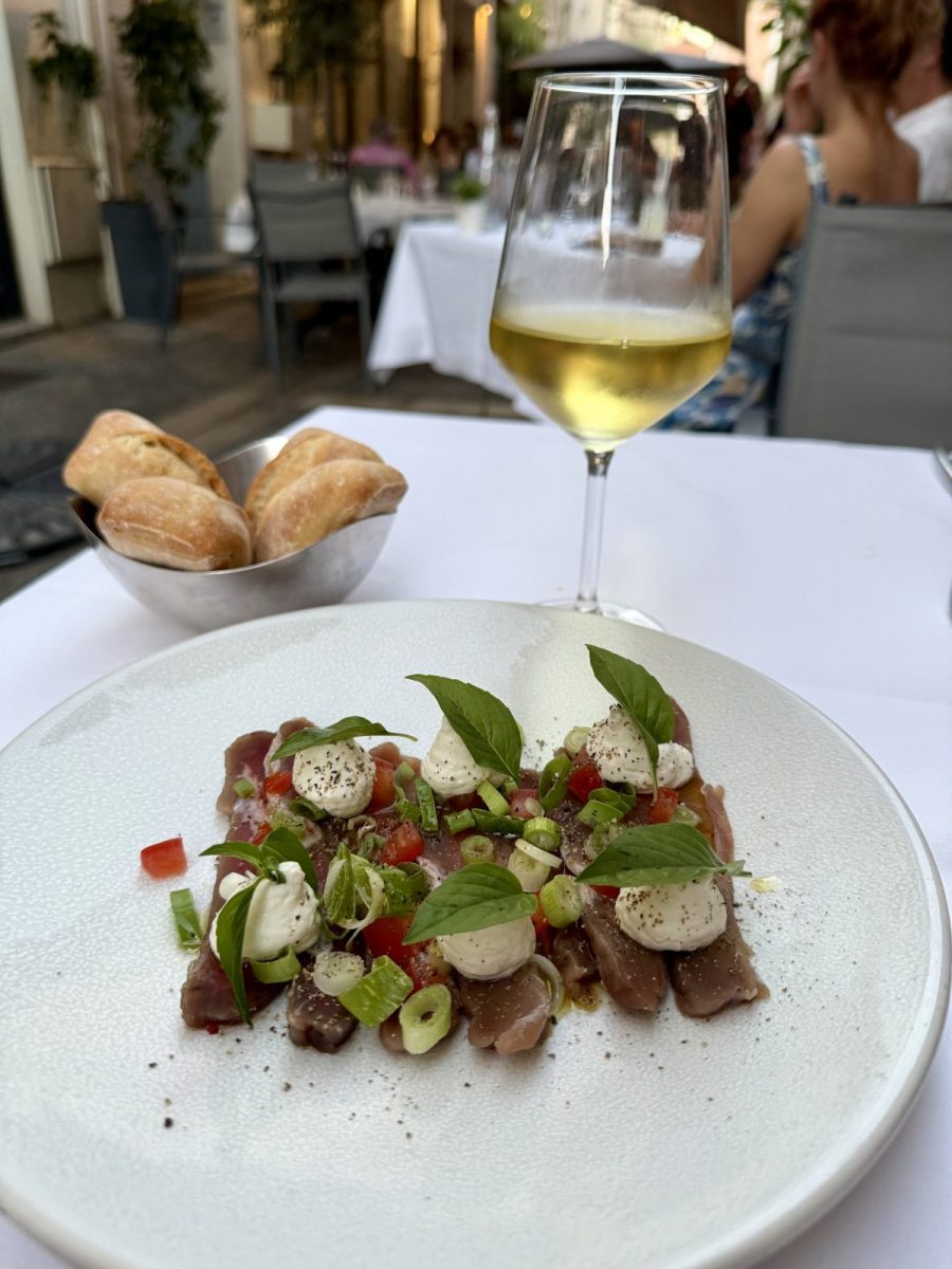 Le déjeuner affirme une ambiance différente de celle du dîner, service de table, dressage, luminosité transforment le lieu et l'adaptent aux circonstances. Plus franc à midi, plus tamisé le soir, tout est pensé pour profiter du moment.