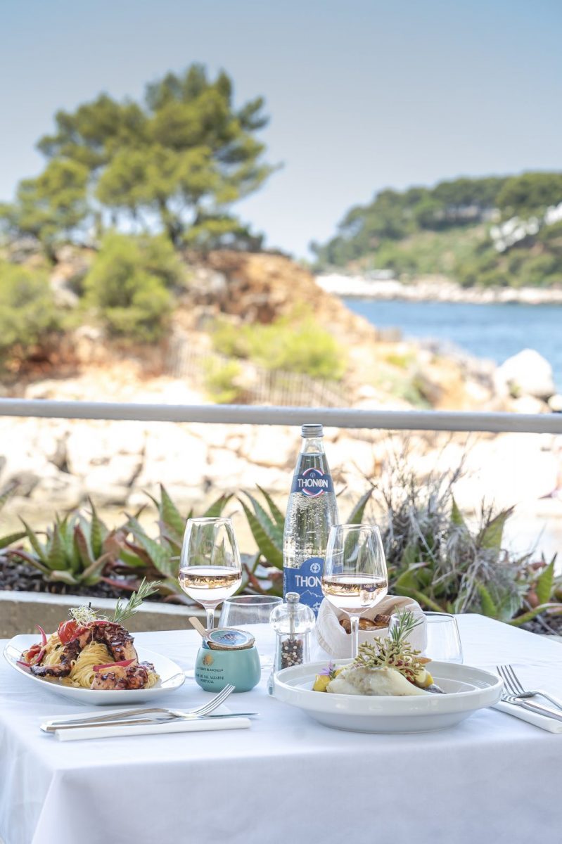 Le Chef y dispense une cuisine méditerranéenne provençale, au gré des saisons, la carte des vins présente une sélection de domaine de la région. Sous la pergola « Belvédère » face à la grande bleue, les gourmets y sont installés, espace estival pour vos journées sereines et légères.